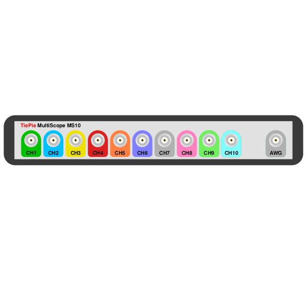 The MultiScope MS10 is a 10 channel MultiScope, created by combining and synchronizing two Handyscope HS6s and a Handyscope HS5, using two TP-C50H CMI Coupling cables.